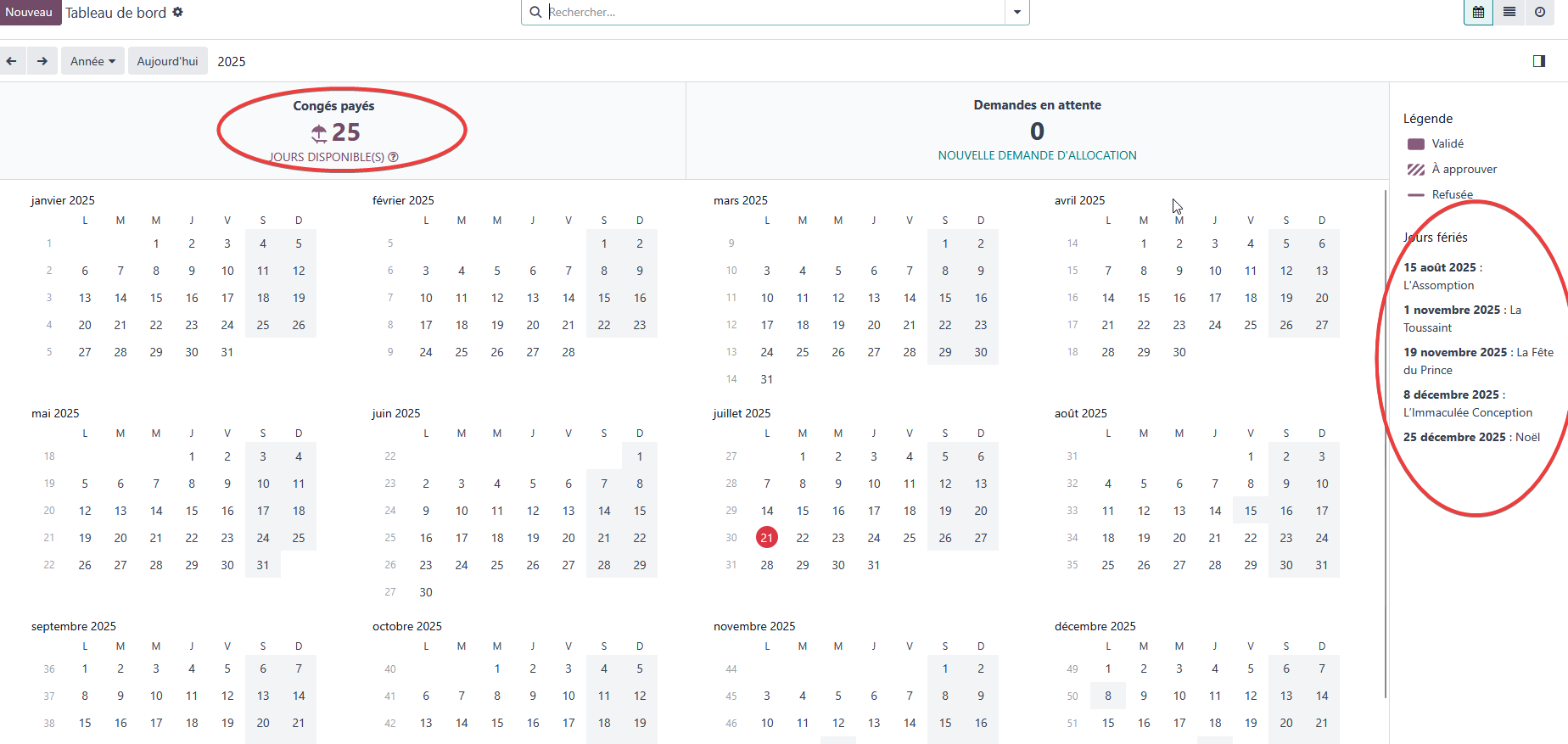 En accord avec la direction pour toutes demandes de congés merci d'utiliser le module congé de Odoo