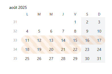 Afin de demander vos congés il suffit de sélectionner le ou les jours par un simple glisser de votre souris :